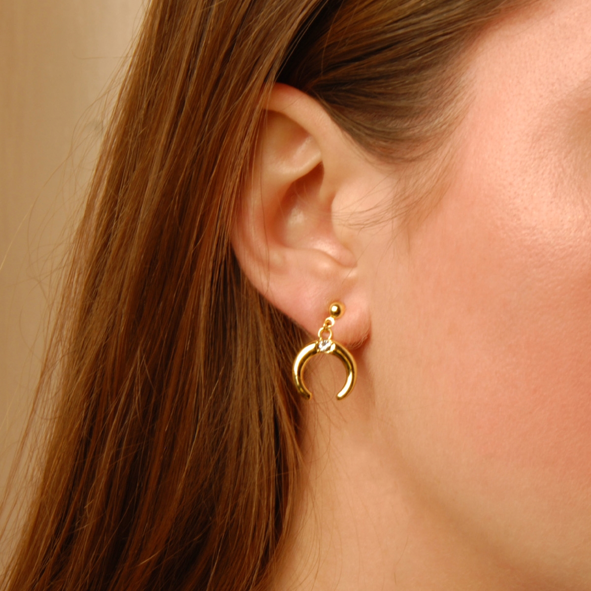 These modern and minimalistic "Beautiful Crescent" stud earrings boast a sleek half-crescent design studded with a shimmering Swarovski crystal for easy-to-wear style. Sterling silver posts. Nickel and lead free jewellery.