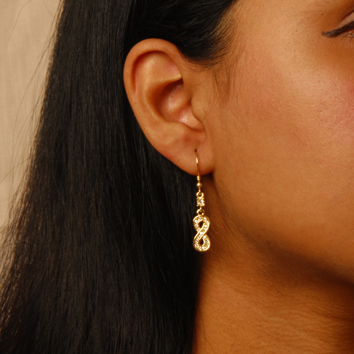 Refined beauty at its best, our "Brilliance Forever" earrings boast a timeless infinity symbol intertwined with sleek medal detailing and shimmering Swarovski crystal for the perfect touch of sparkle. Sterling silver hooks. Nickel and lead free jewellery.