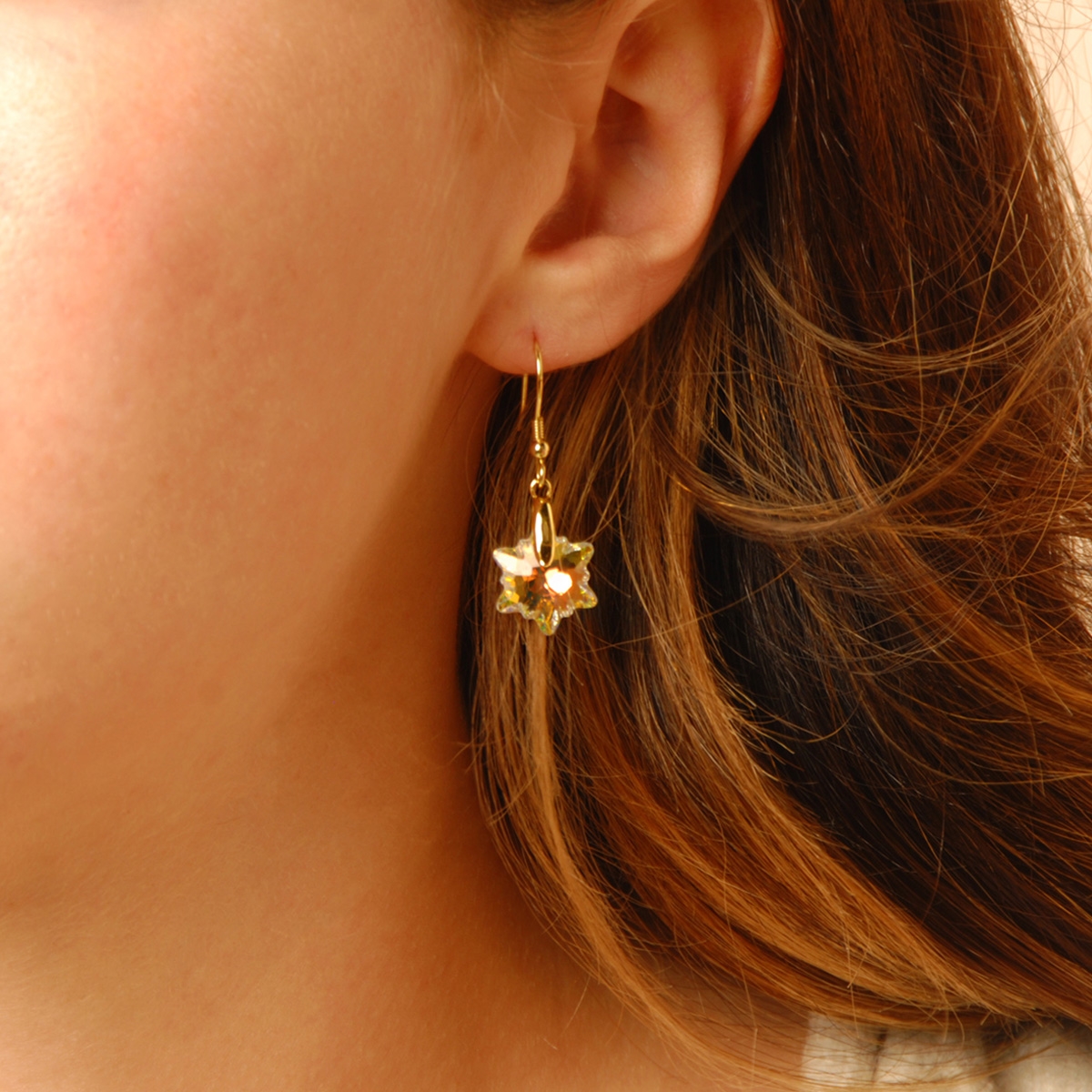 Our shimmering "Brilliant Star" earrings are a must-have for your collection! Showcasing intricate special cut aurora borealis Swarovski crystal stars suspended from sleek sterling silver hooks, these fashion accessories are the perfect glimmering choice. Nickel and lead free jewellery.