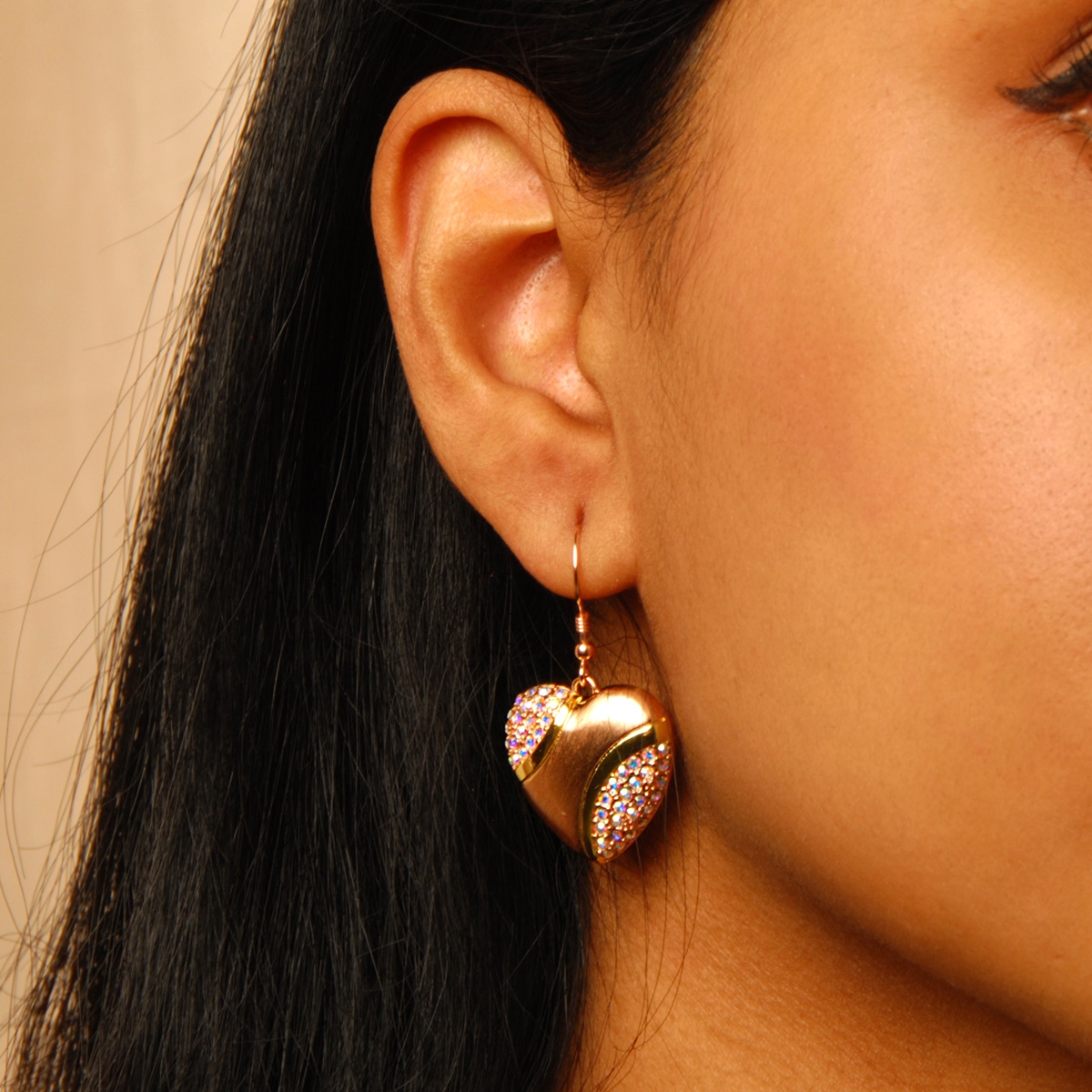 Dress it up or dress it down with our charming "Brimming With Love" earrings, showcasing stunning two-tone hearts set with shimmering Swarovski crystal on sleek sterling silver hooks. Nickel and lead free jewellery.