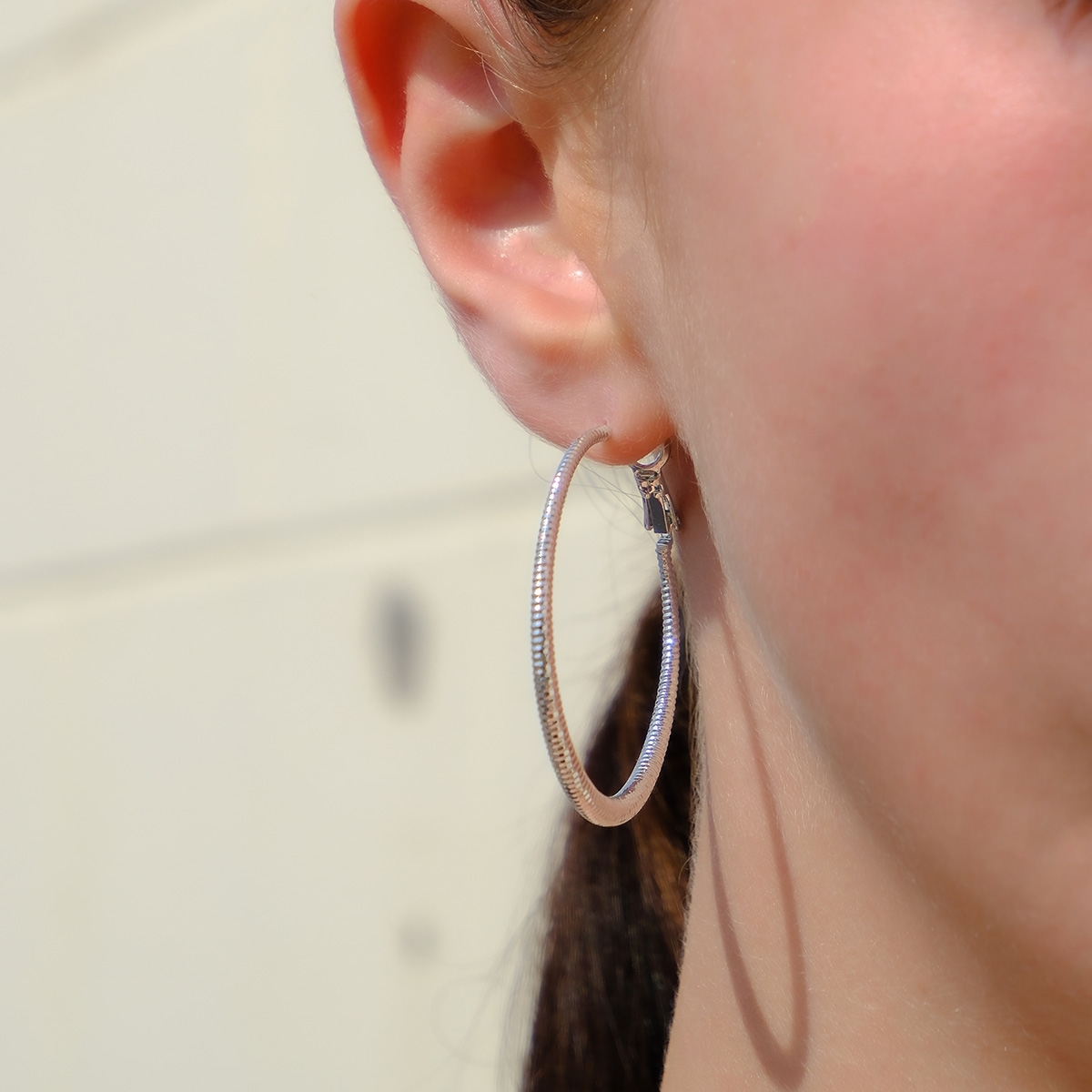 Endlessly stylish, our textured “Classic Elevation” hoop earrings are the perfect everyday go-to FAC accessory! Sterling silver posts. Nickel and lead free.