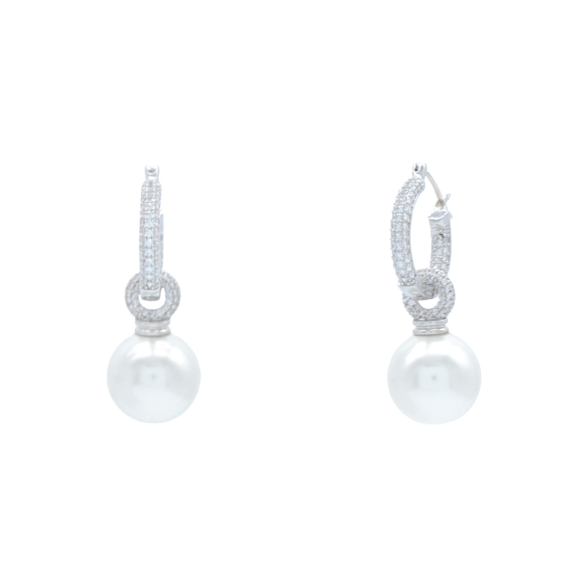 Classic romance with a twist, our "Fancy & Pearls" earrings showcase exquisite hoops of glamorous sparkling AAA cubic zirconia accompanied by stunning pearl drops. Sterling silver posts. Nickel and lead free jewellery.