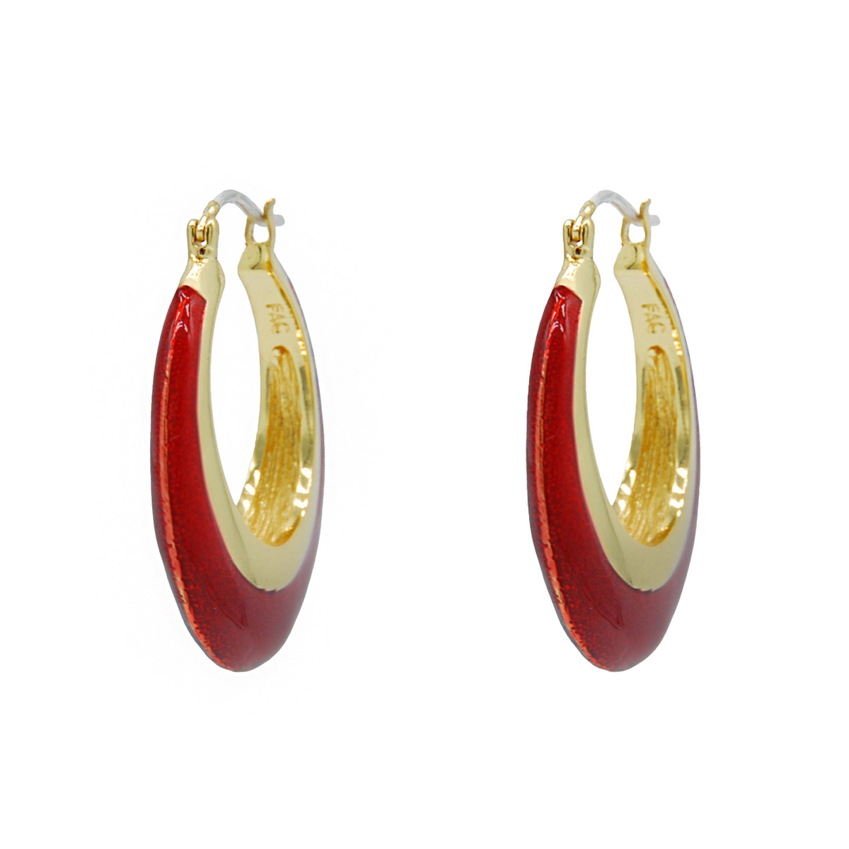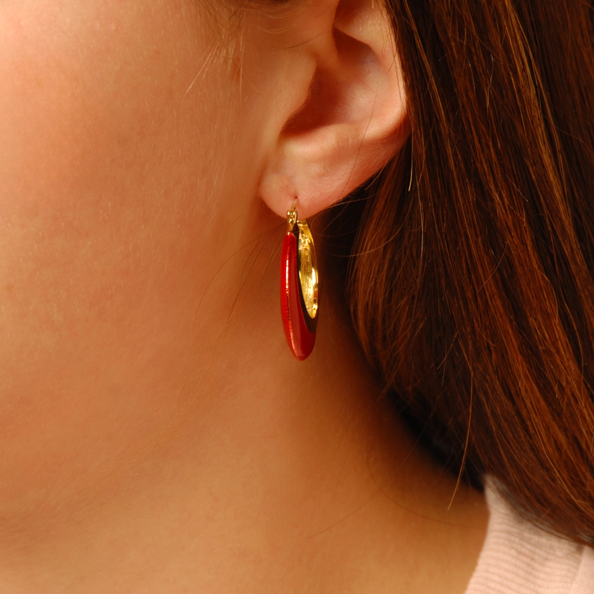 Our vibrant and romantic "Festive Statement" earrings in a classic yet trendy hand-painted red enamel hoop design with a gleaming gold finish will add style and charm to any outfit. Sterling silver posts. Nickel and lead free jewellery.