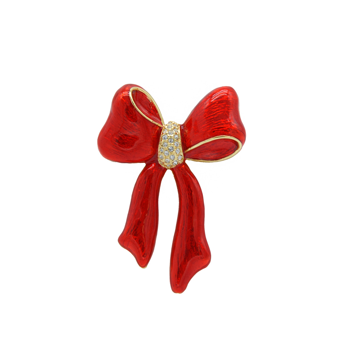 The magic of the season is captured in our vibrant "Festive Ties" pin! Fifth Avenue Collection's exclusive 2025 collector's design is a classic yet trendy hand-painted red enamel bow trimmed in a gleaming gold finish, and centered with sparkling clear Swarovski crystal to add style and charm to any outfit. Nickel and lead free jewellery.