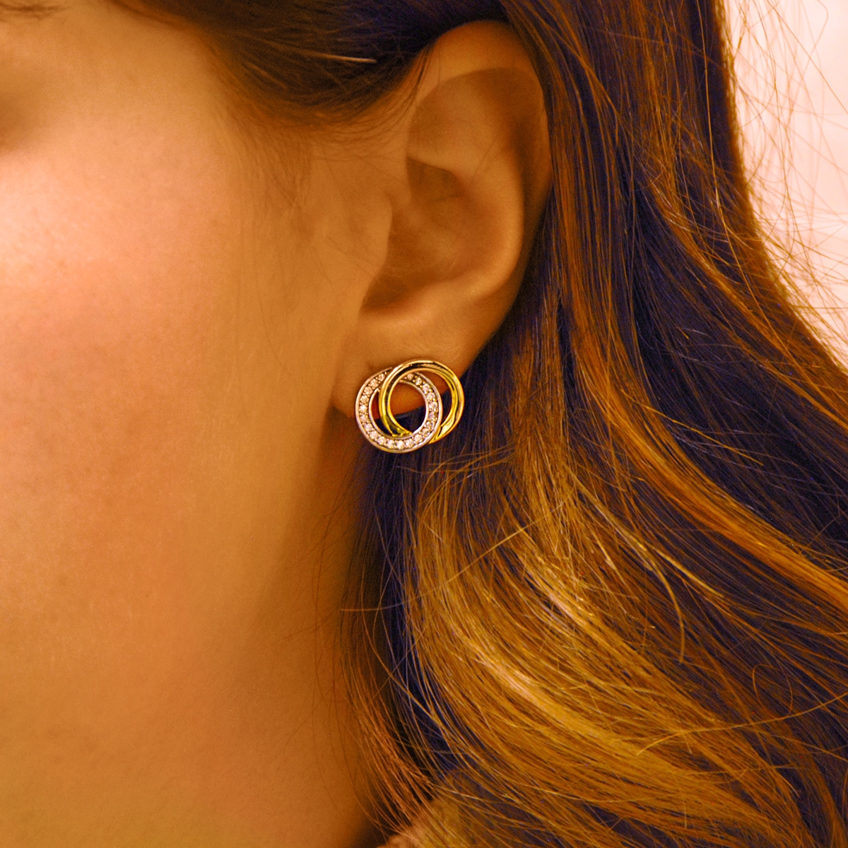 Designed with simple style in mind, our "Forever Brilliance" earrings boasts a timeless two-tone double circle stud adorned with brilliant AAA cubic zirconia to make this super cute fashion accessory perfect for everyday! Sterling silver posts. Nickel and lead free jewellery.