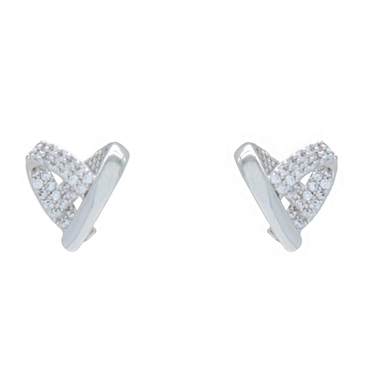 Give your look a playful sparkle when you wear our "Hearts Crossed" earrings, featuring dazzling AAA cubic zirconia set in a modern woven heart design. Sterling silver posts. Nickel and lead free jewellery.