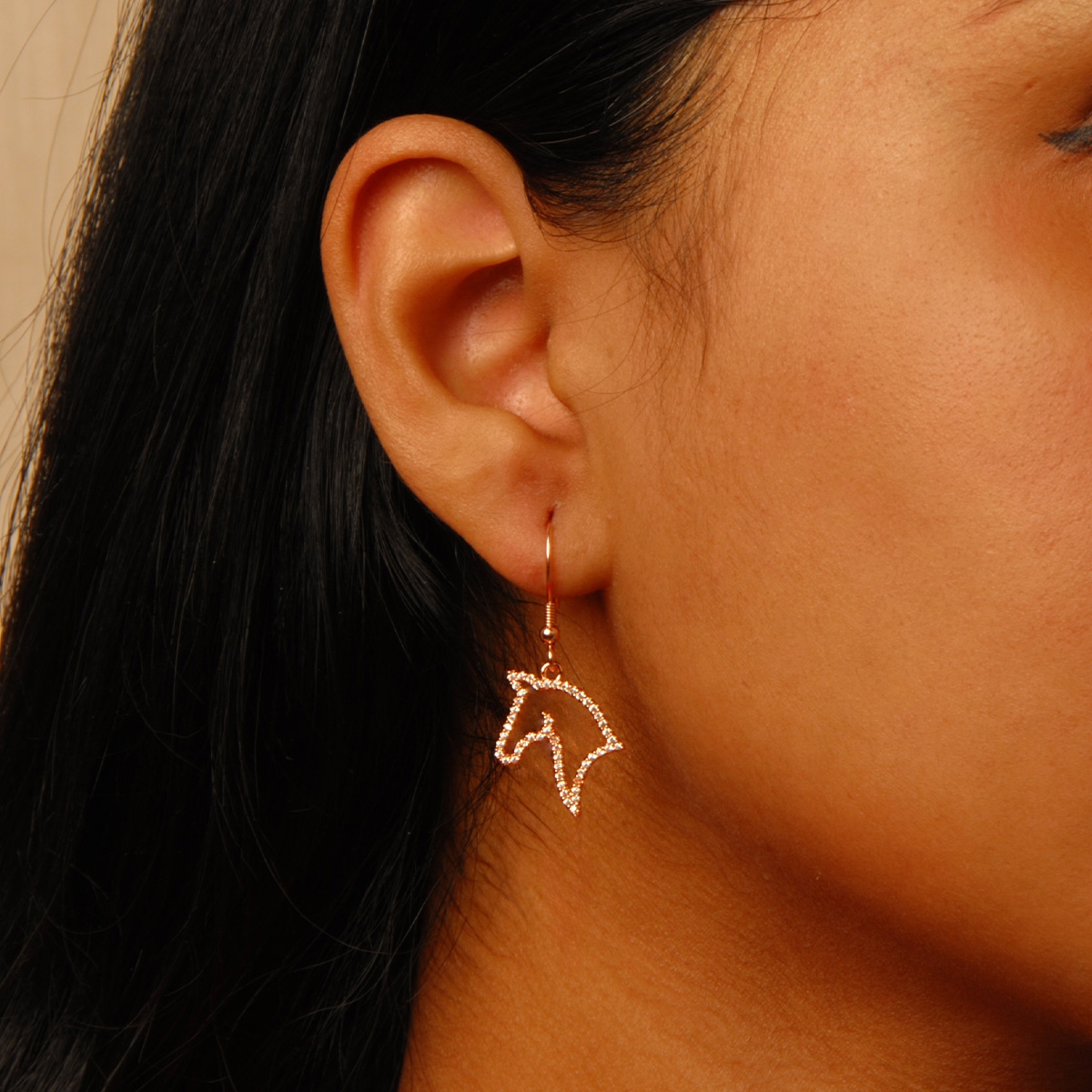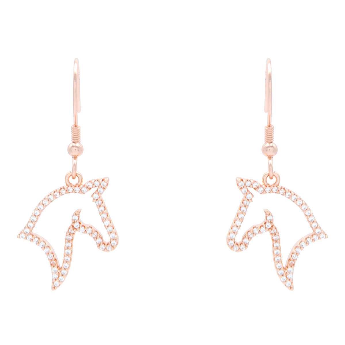 Equine inspired our stunning "Horse Love" earrings flaunt an elegant horse head silhouette sparkling with AAA cubic zirconia suspended from sleek sterling silver hook earrings. Nickel and lead free jewellery.