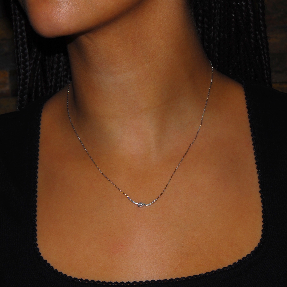 Dainty and sweet, our beautiful "Knotted Excellence" neckpiece flaunts a timeless knot design encrusted in shimmering AAA cubic zirconia suspended from a sleek 17" designer chain for the perfect elegant touch. Nickel and lead free jewellery.