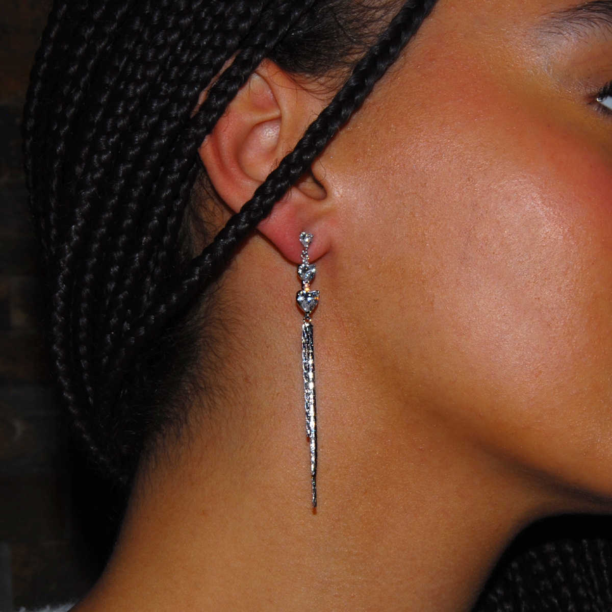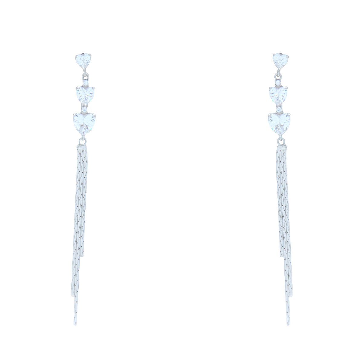 Playful and fun, our “Lovely Fringe” earrings were designed with romance in mind. Adorned with stunning AAA cubic zirconia hearts and flirty chains this design will attract attention everywhere you go! Sterling silver posts. Nickel and lead free.