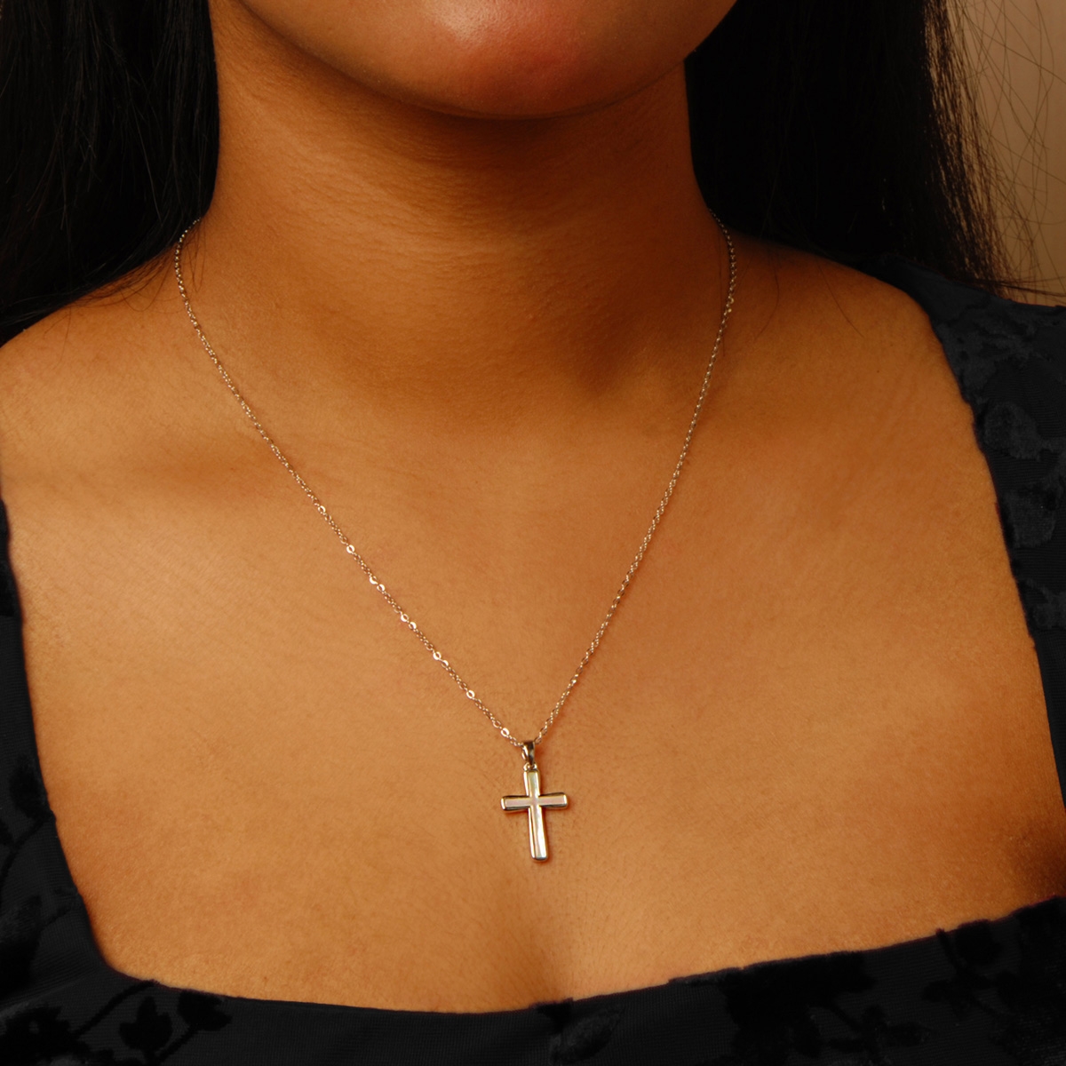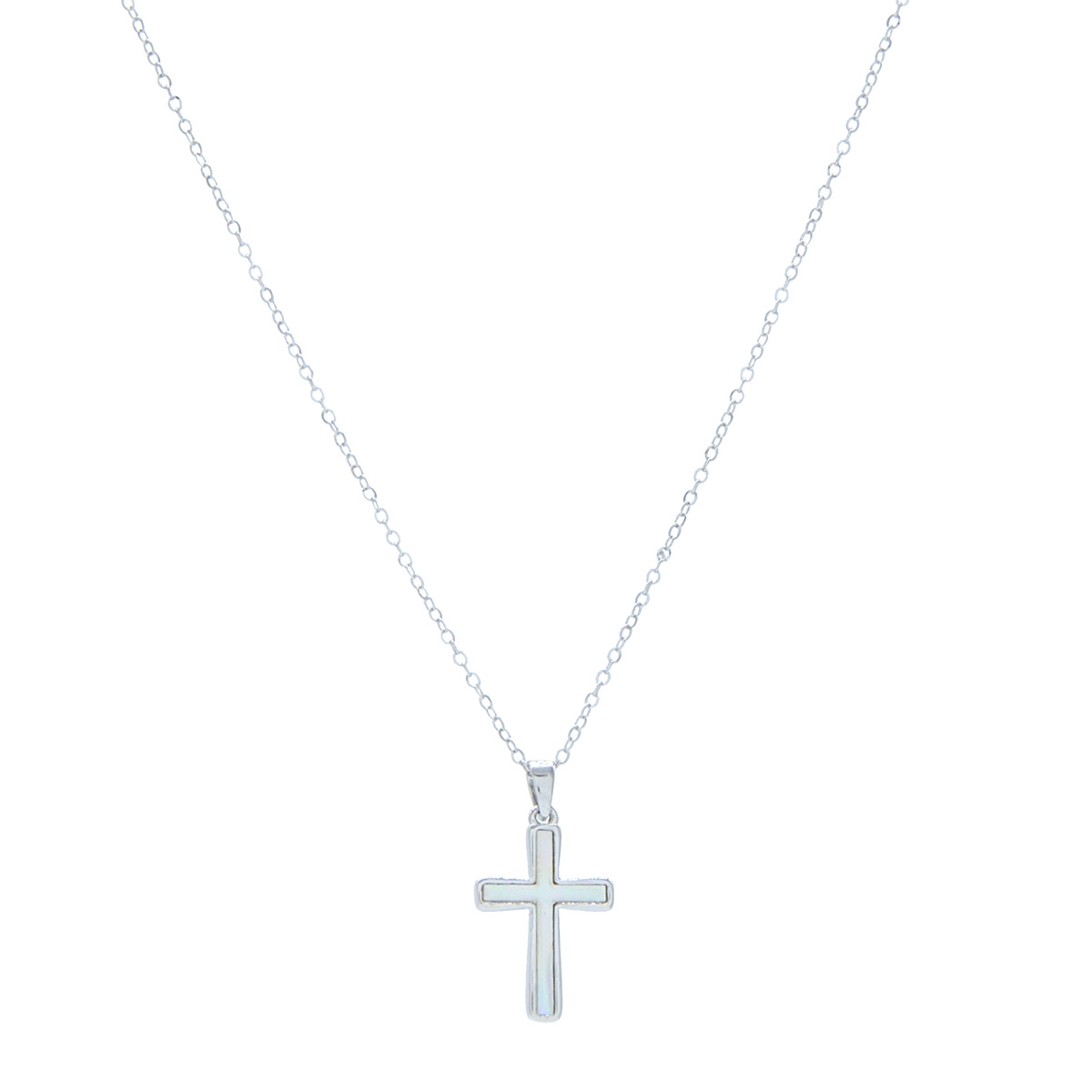 Make an expressive statement of faith when you wear our timeless "Luminous Beliefs" neckpiece featuring a fine 18" rhodium finished chain adorned with a divine mother of pearl cross pendant. Nickel and lead free jewellery.