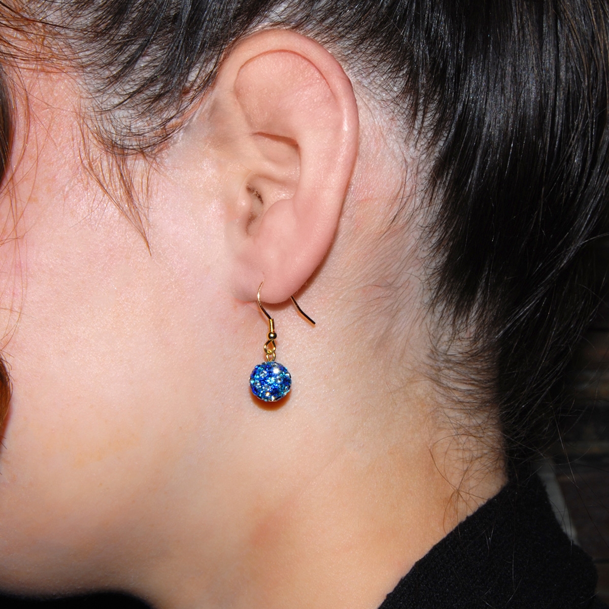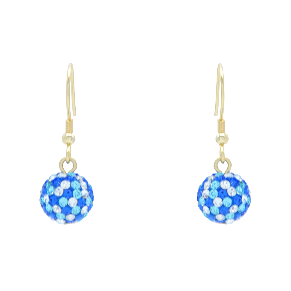 Our brilliant “Messenger of Joy” earrings feature stunning crystal balls studded with glittering aqua, sapphire and clear Swarovski crystal on sterling silver hooks. Nickel and lead free jewellery.