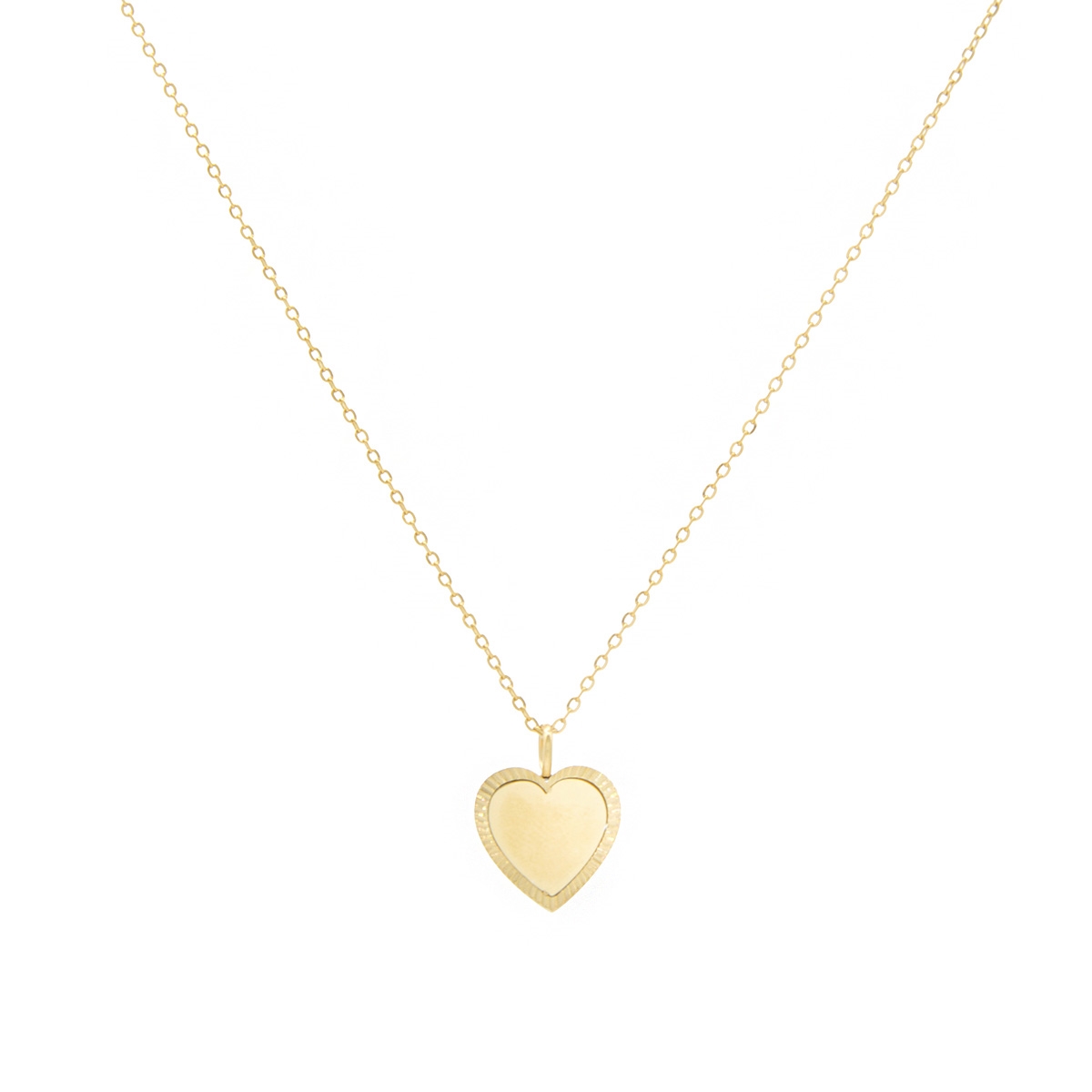 Personalized jewellery is the perfect gift! It's also a lovely way to tell your story with beauty and class. This sentimental stainless steel heart design finished in gleaming gold is timeless. In your orders special instructions section, please include the name or word you would like engraved (max one line and 8 characters) along with the font. For example: Dream, font c. Engraving inclduded in the price. 16" neckpiece with 2" extension. Nickel and lead free jewellery.