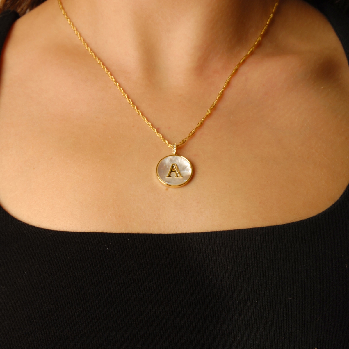 Treat yourself or a loved one with our trending "Personalized Luxury" initial pendant. This stunning combination of genuine mother of pearl and sparkling AAA cubic zirconia is the perfect way to personalise your look. 18" designer chain with 2" extension. Nickel and lead free jewellery.