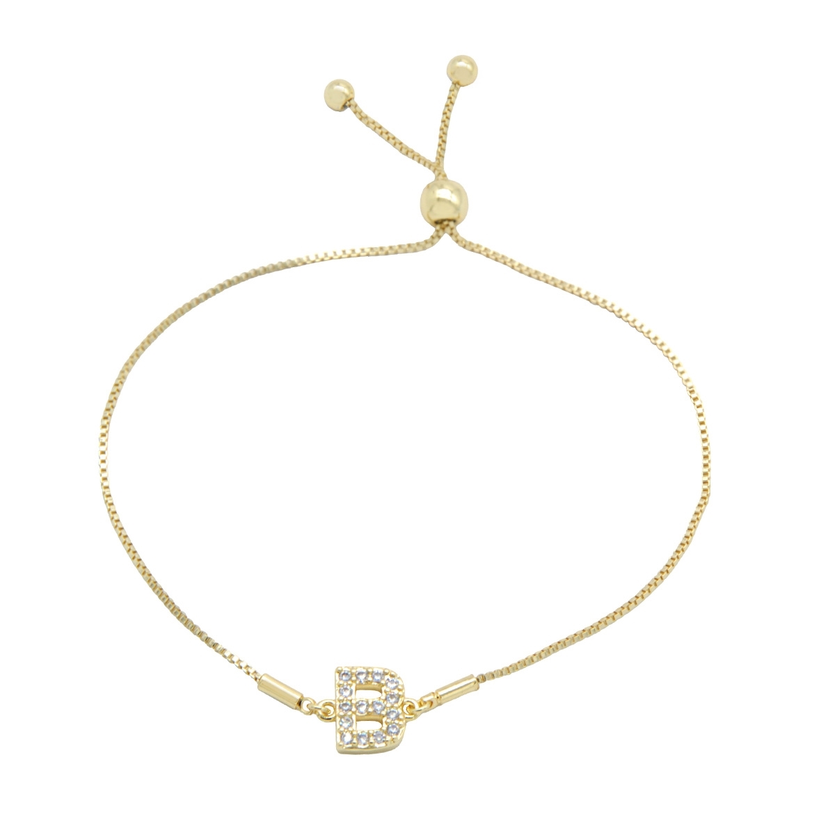 Endlessly wearable, our pretty “Personalized Sparkle” initial bracelet is the perfect everyday go-to FAC accessory. This stunning combination of gleaming gold finish and sparkling AAA cubic zirconia is the perfect way to personalise your look. 7.5" drawstring bracelet. Nickel and lead free jewellery.