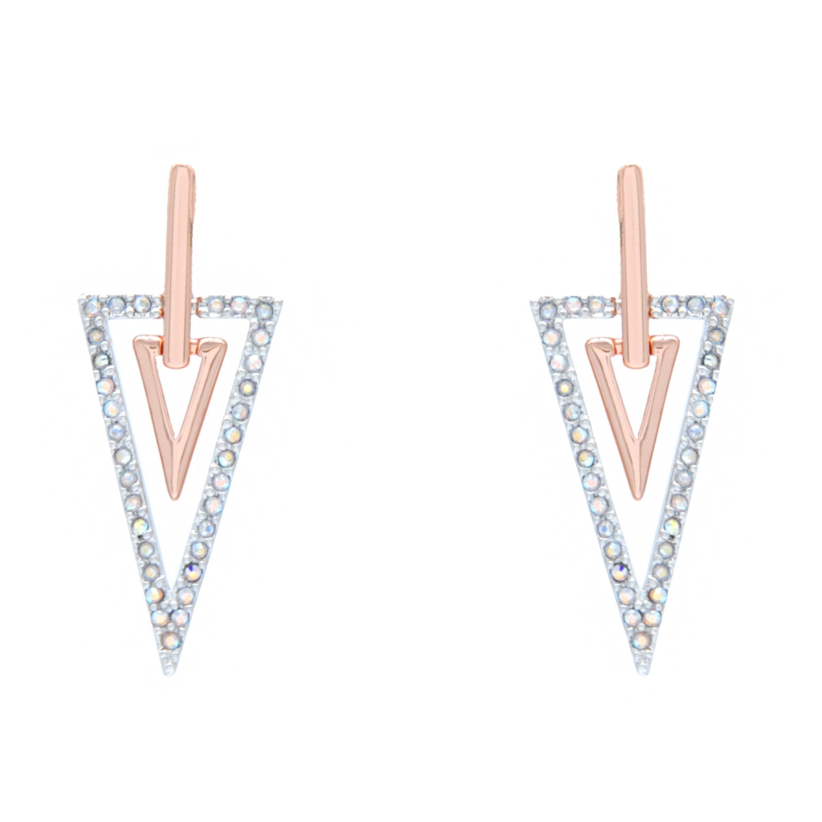 Flaunt your style with our chic and flattering “Pointed Opulence” earrings. These stunning fashion accessories feature a sleek, triangular design combining smooth, polished bars and sparkling Swarovski crystal. Sterling silver posts. Nickel and lead free jewellery.