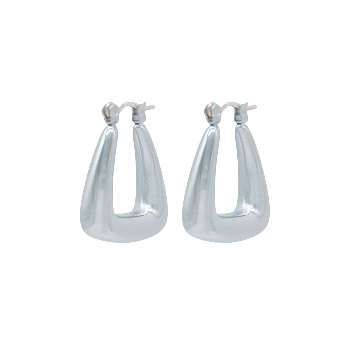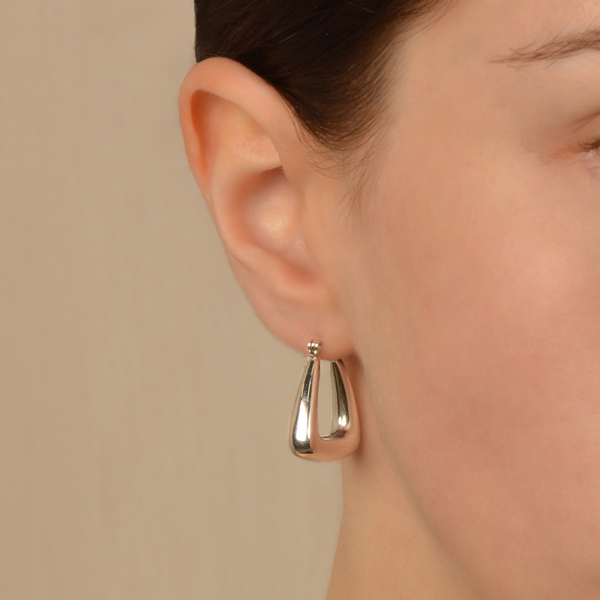 Stylishly chic our "Sleek Finish" earrings boast a rich modern spin on the classic hoop design with their thick geometric lines and smooth metallic finish. Sterling silver posts. Nickel and lead free jewellery.