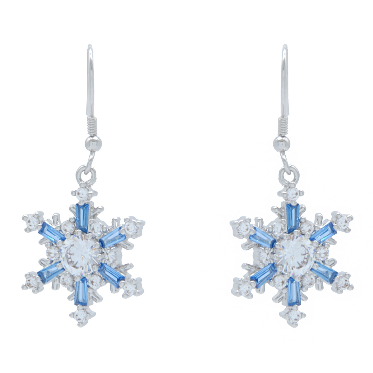 Catch the light when you wear our exquisite "Snowflake Sparkle" earrings! Boasting shimmering blue baguettes and clear round AAA cubic zirconia in a beautiful wintery snowflake design. Sterling silver hooks. Nickel and lead free jewellery.