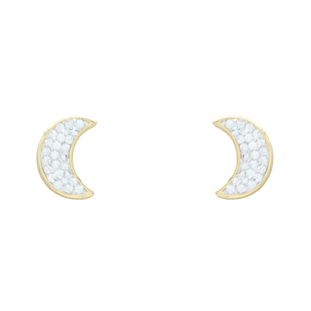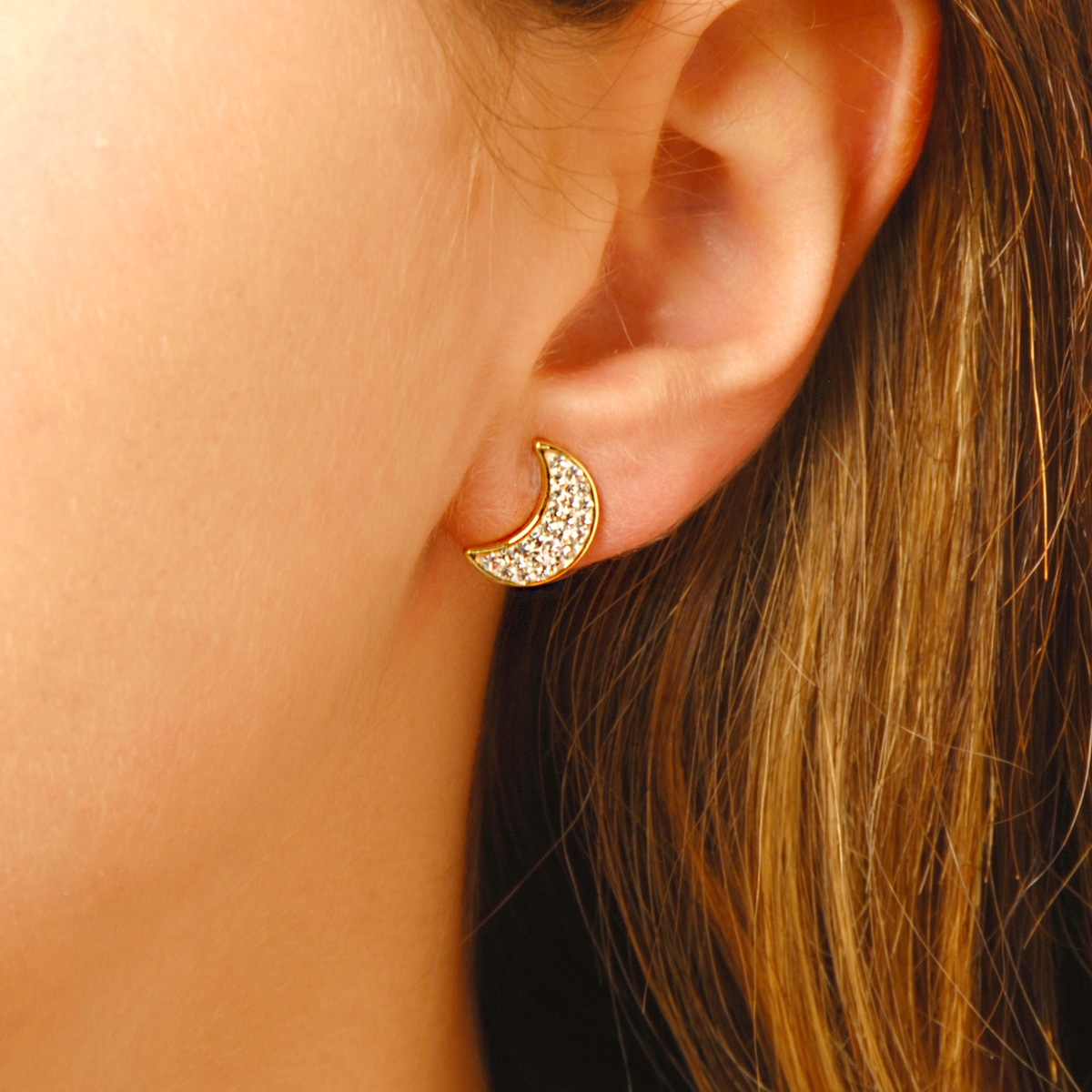 Cosmically inspired our twinkling "Stargazing Shimmer" earrings flaunt charming moon-shaped studs encrusted with Swarovski crystal for a brilliant touch of sparkle. Sterling silver posts. Nickel and lead free jewellery.