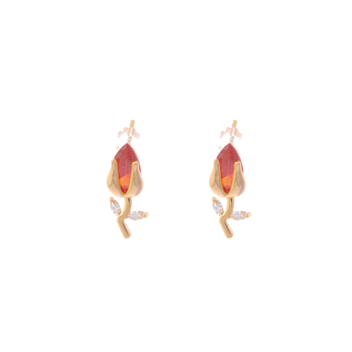 FAC's beautiful "The Meaning Of Love" earrings flaunt a romantic feminine design featuring delicate flowers embellished with red and clear AAA cubic zirconia in a rich gold finish. Sterling silver posts. Nickel and lead free jewellery.