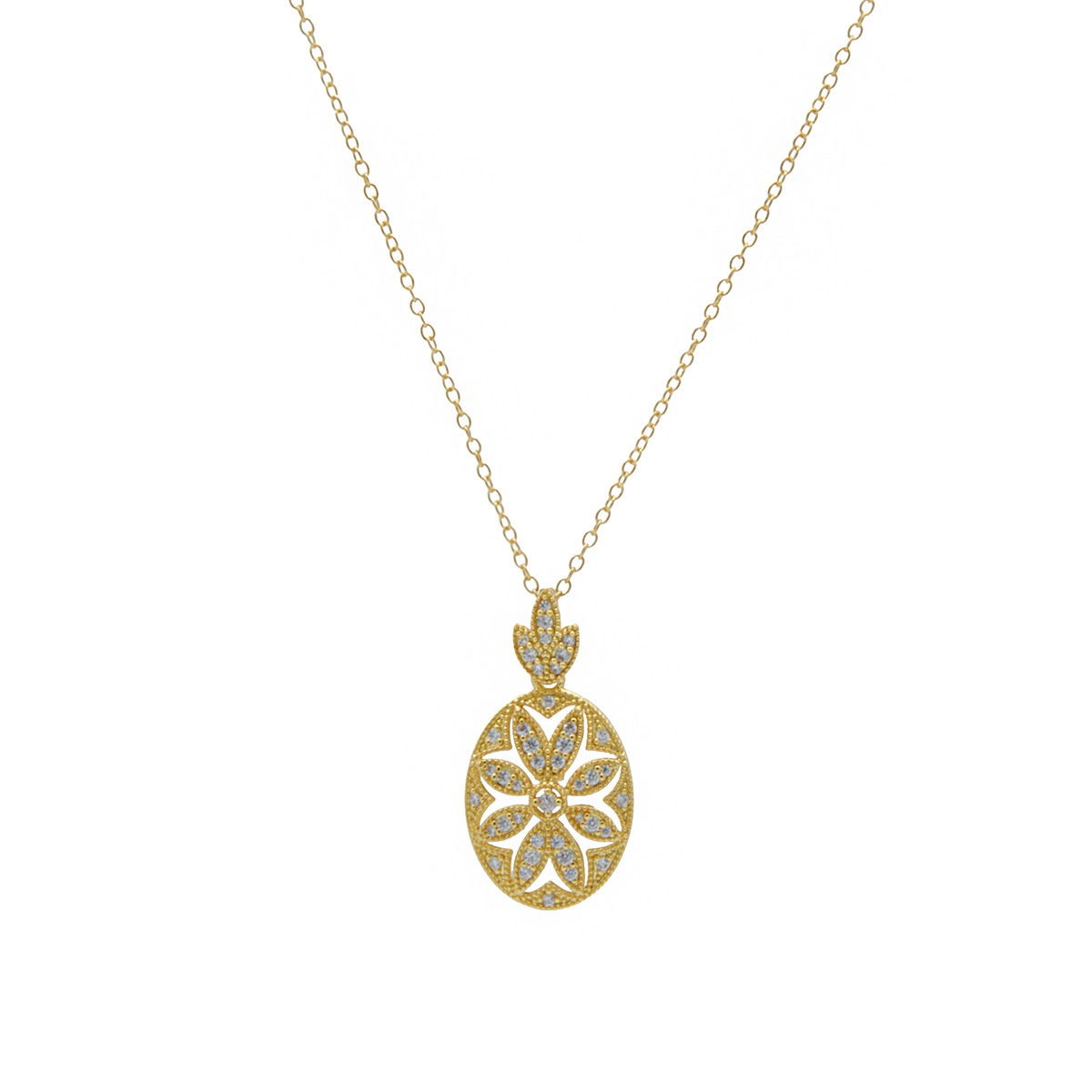 Botanically inspired, our romantic "Vintage Florals" neckpiece is elegantly designed showcasing a beautiful AAA cubic zirconia studded pendant on a sleek 18" designer chain. Nickel and lead free jewellery.